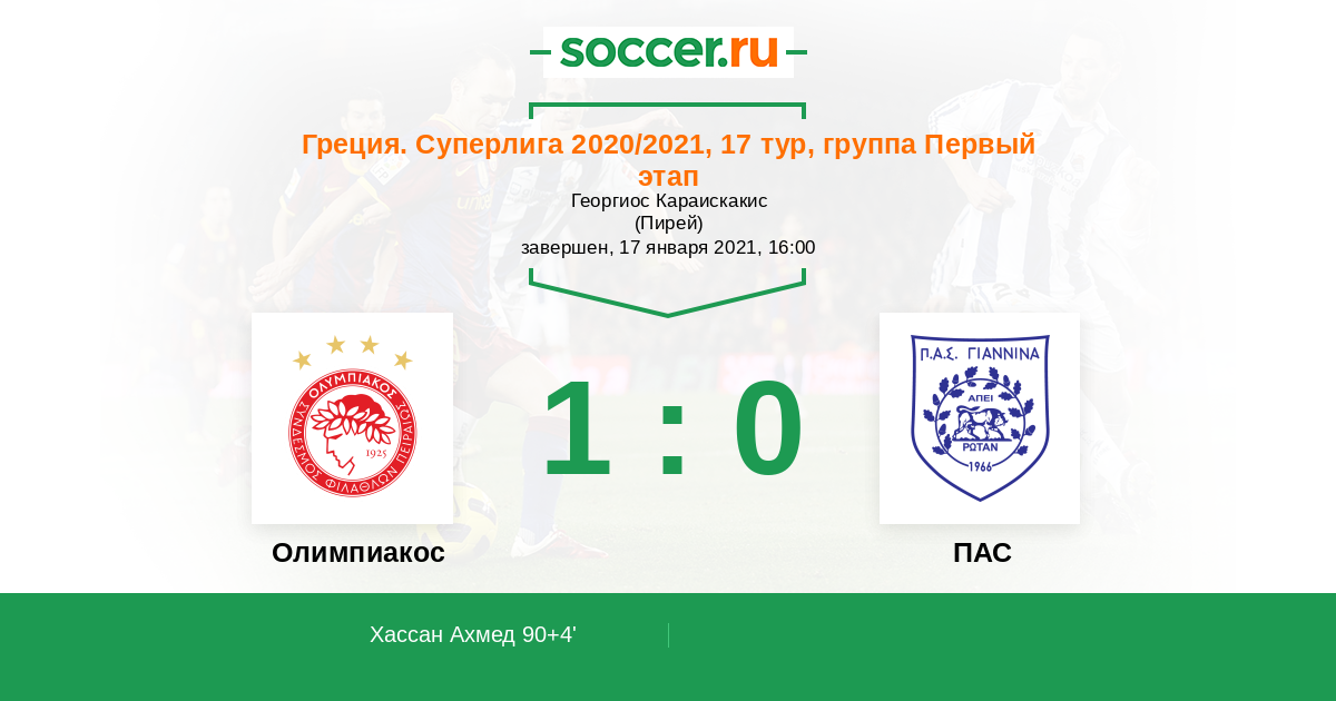 Протокол матча Олимпиакос против ПАС