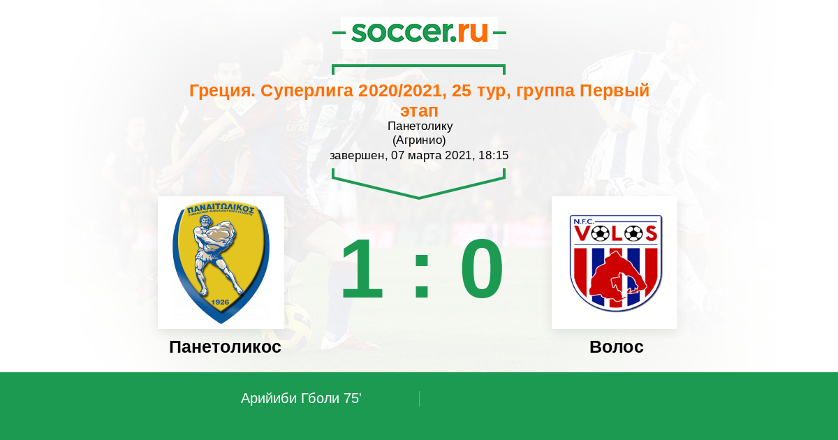 Протокол матча Панетоликос против Волос