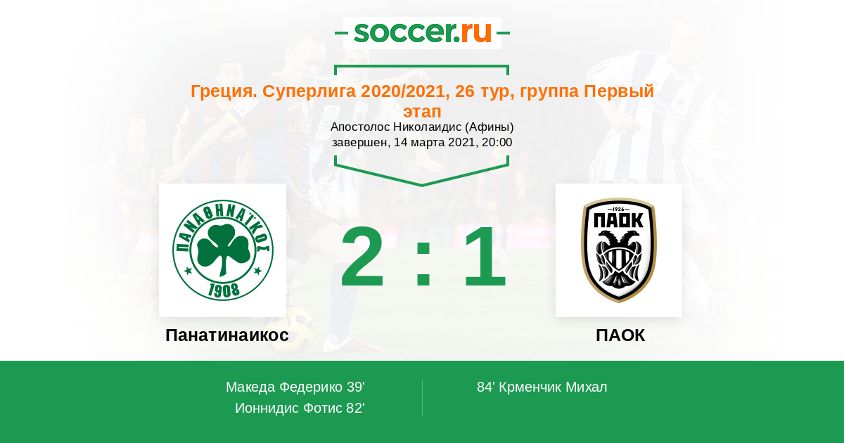 39' (1:0) Македа Федерико (9) (Хацийоаннис Анастасиос (11))