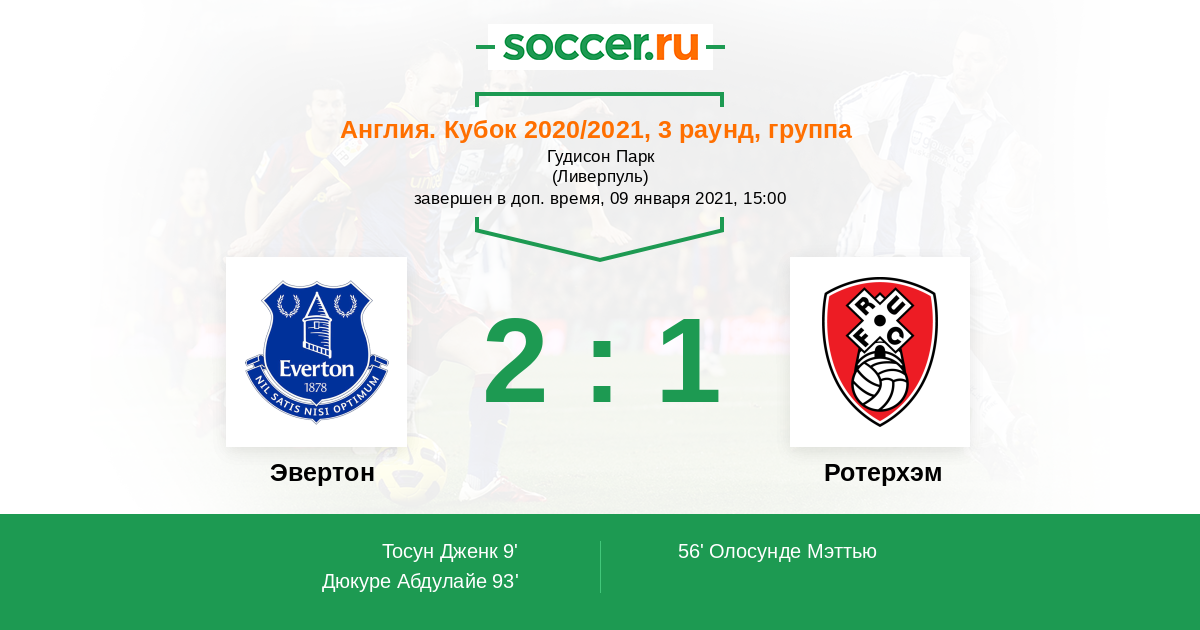 Протокол матча Эвертон против Ротерхэм