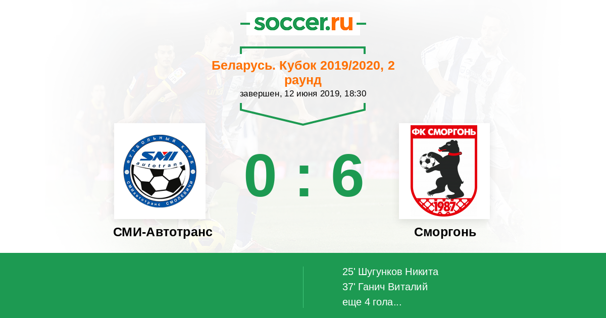Протокол матча СМИ-Автотранс против Сморгонь