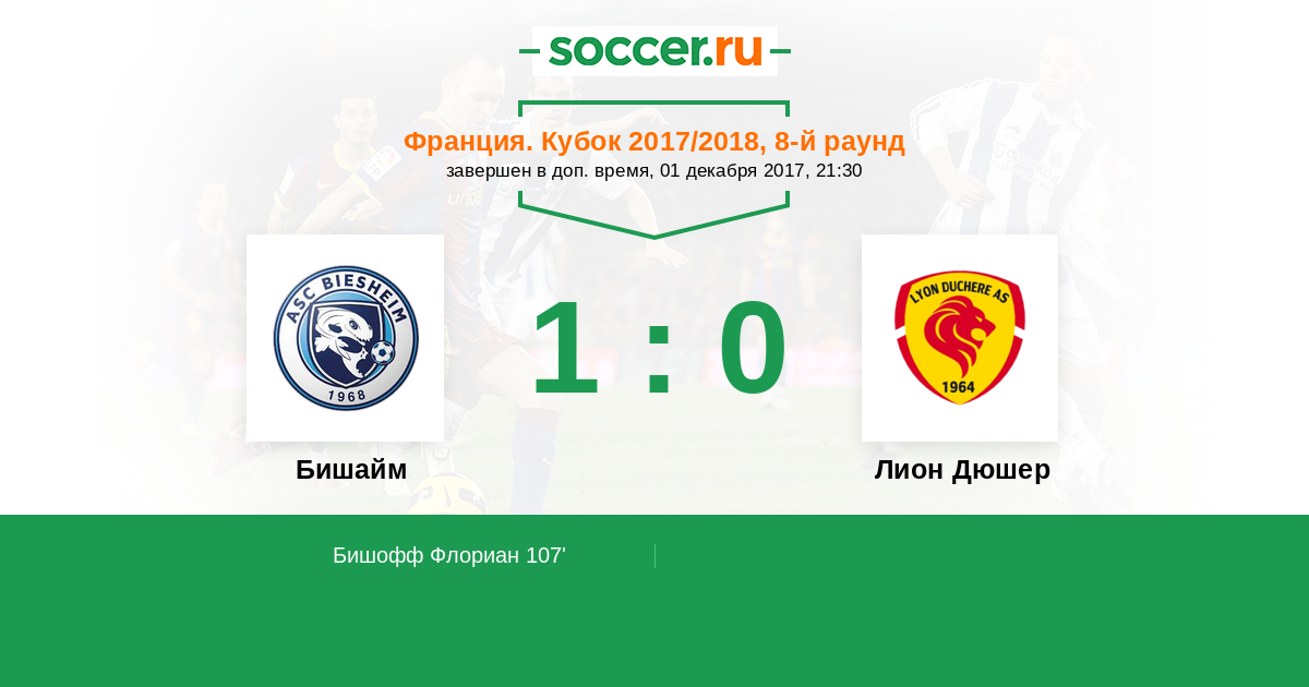 Протокол матча Бишайм против Лион Дюшер