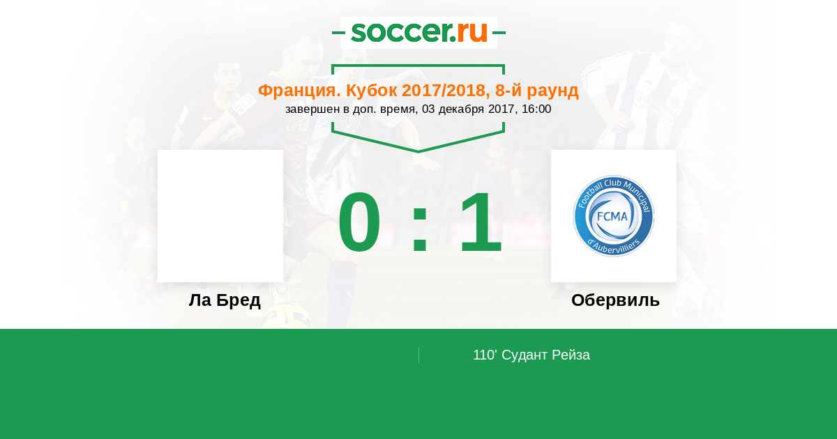 Протокол матча Ла Бред против Обервиль