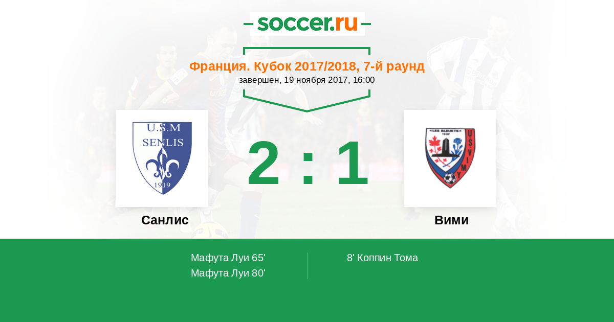 Протокол матча Санлис против Вими