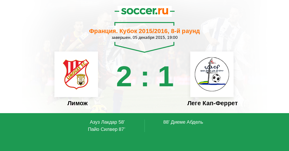 Протокол матча Лимож против Леге Кап-Феррет