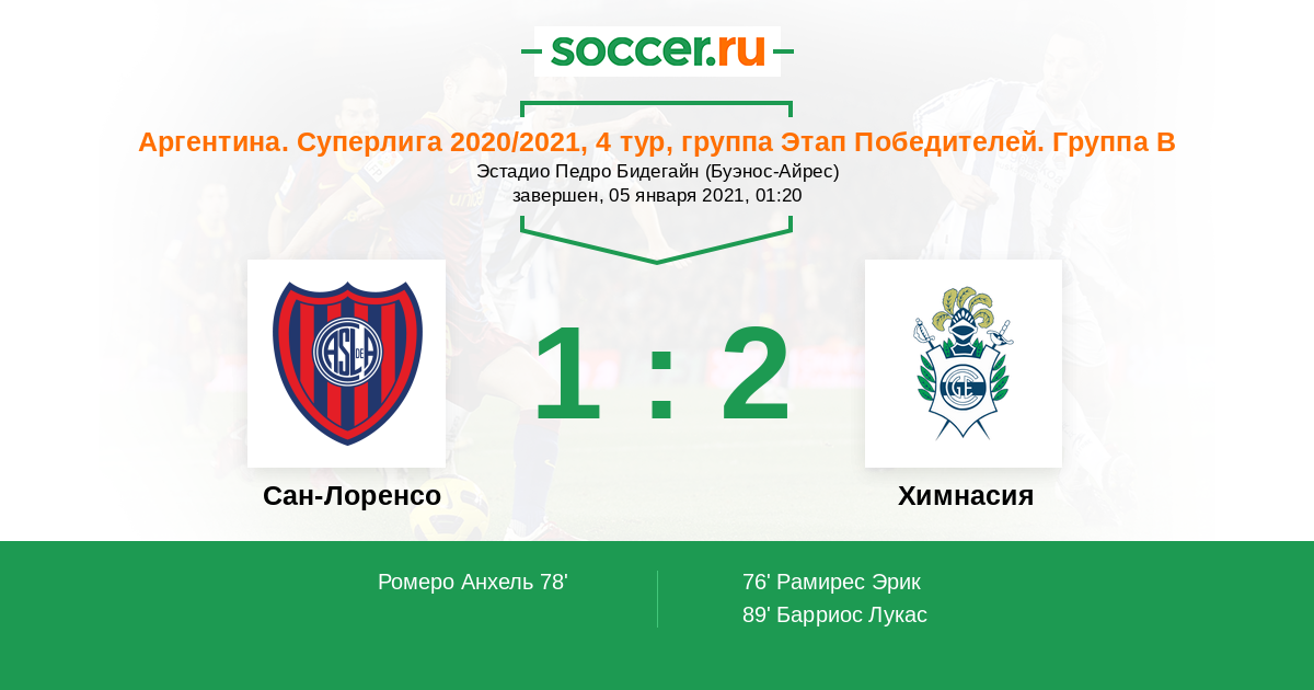 Протокол матча Сан-Лоренсо против Химнасия