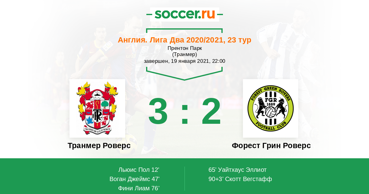 Протокол матча Транмер Роверс против Форест Грин Роверс