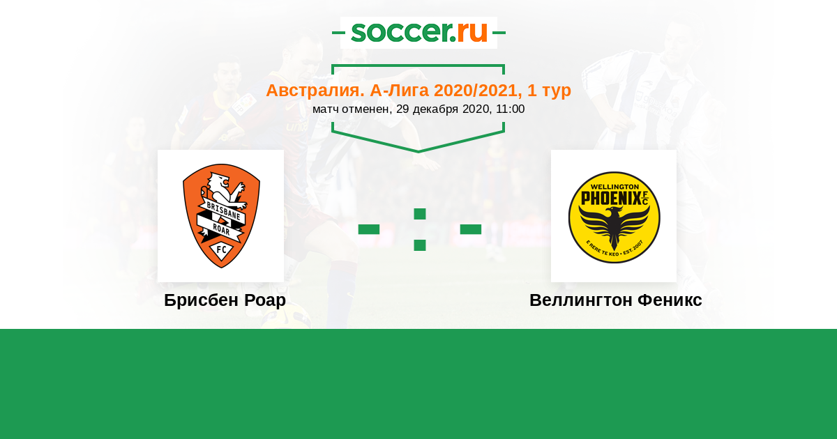 Австралия. А-Лига 01.05.2021 Брисбен Роар Логотип футбольный клуб Брисбен Роар 0:0 Логотип футбольный клуб Веллингтон Феникс Веллингтон Феникс