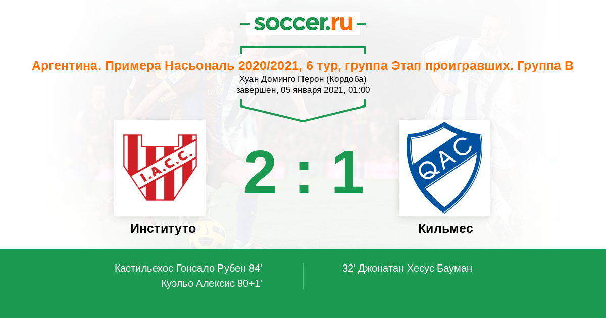 Протокол матча Институто против Кильмес