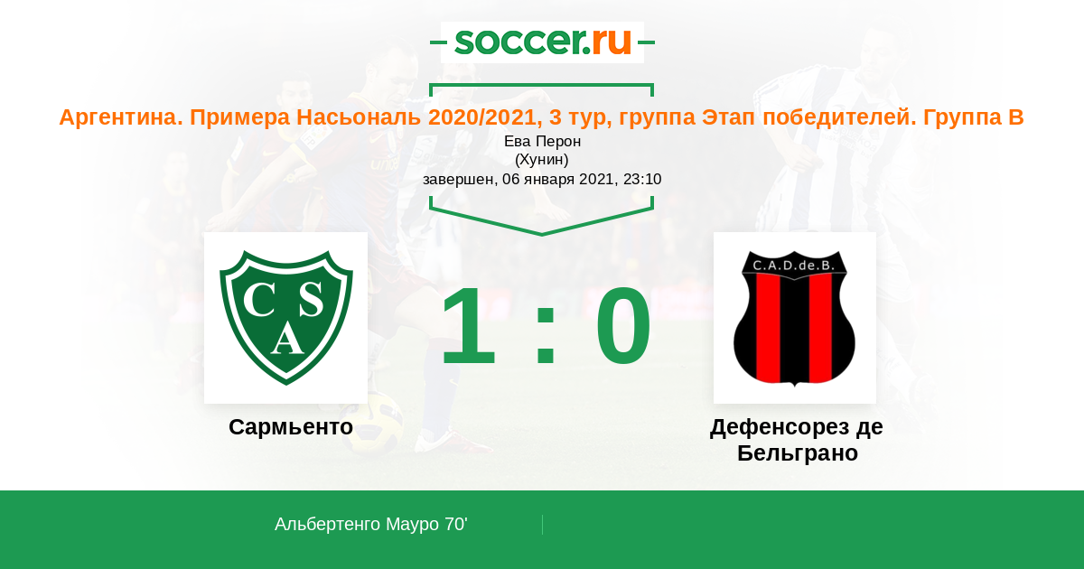 Протокол матча Сармьенто против Дефенсорез де Бельграно