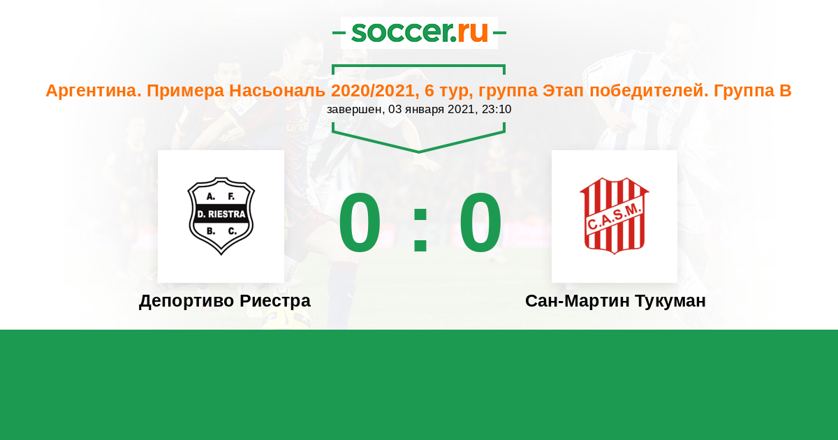 Протокол матча Депортиво Риестра против Сан-Мартин Тукуман