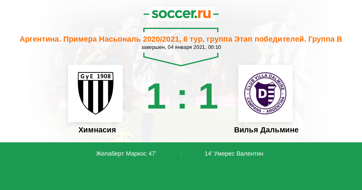 Протокол матча Химнасия против Вилья Дальмине