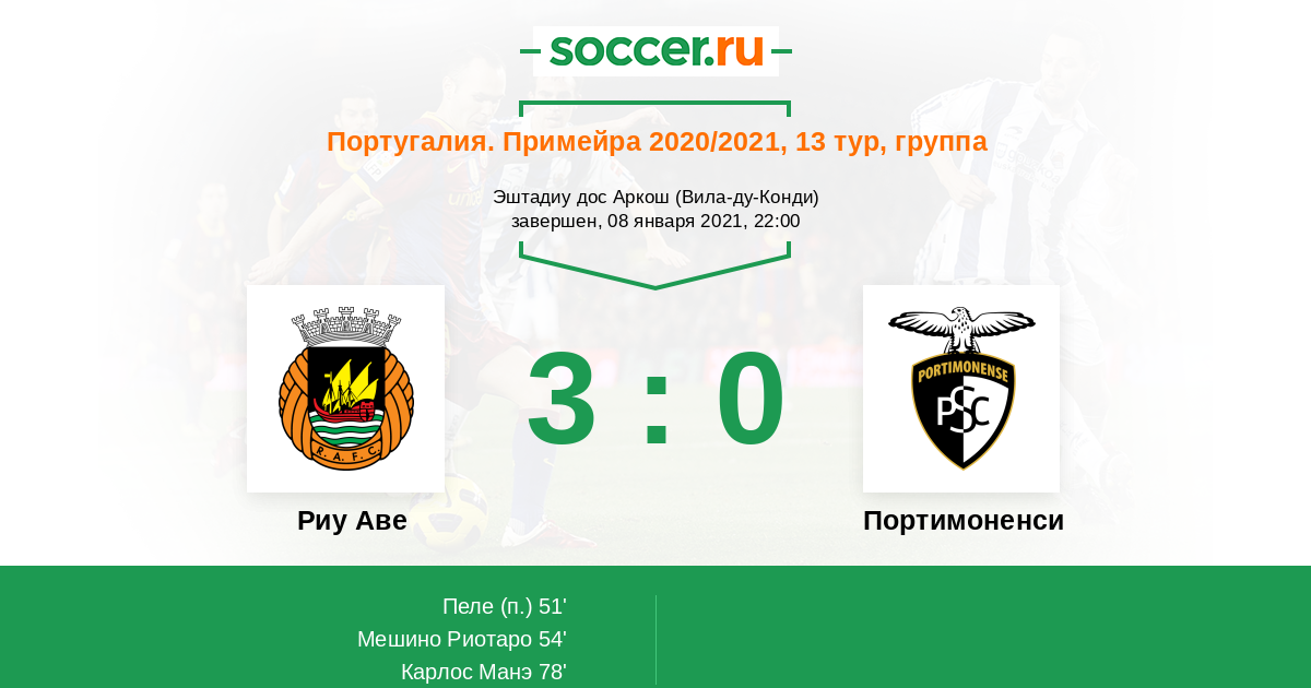Протокол матча Риу Аве против Портимоненси