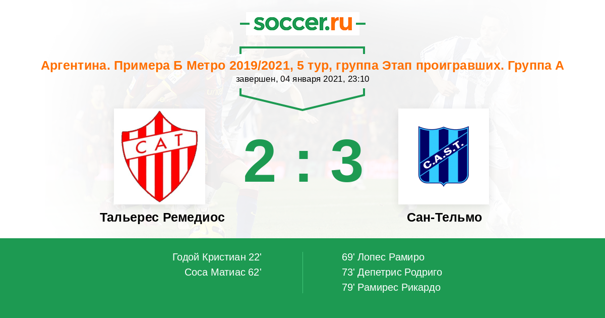 Протокол матча Тальерес Ремедиос против Сан-Тельмо