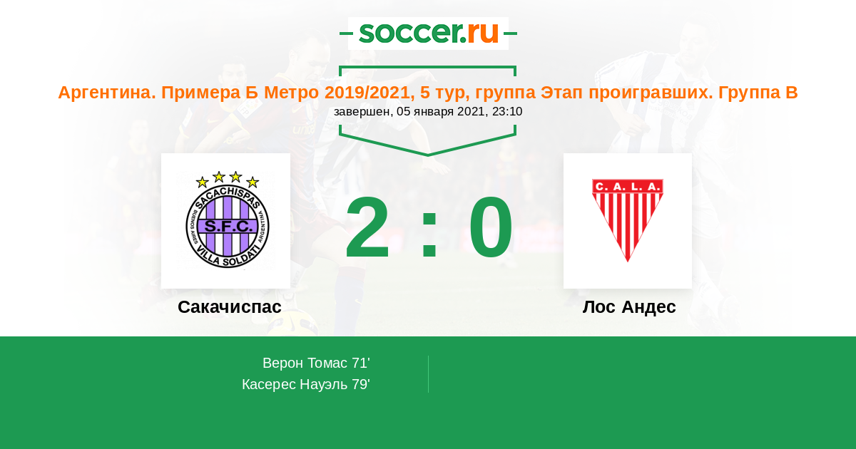 Протокол матча Сакачиспас против Лос Андес
