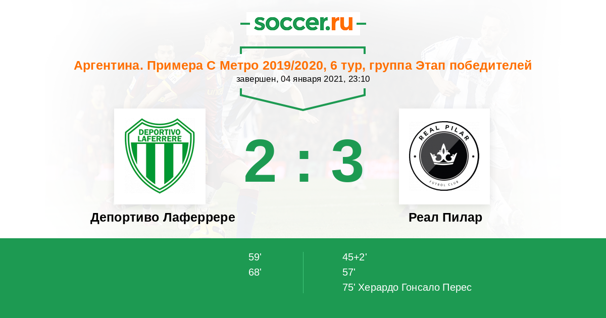 Протокол матча Депортиво Лаферрере против Реал Пилар
