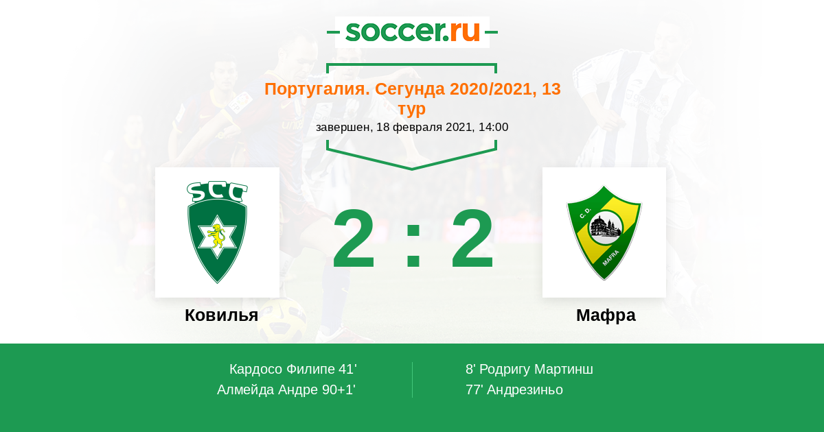 Протокол матча Ковилья против Мафра