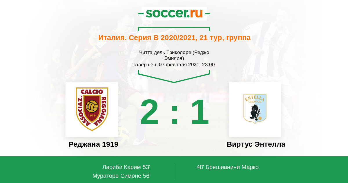 Протокол матча Реджана 1919 против Виртус Энтелла