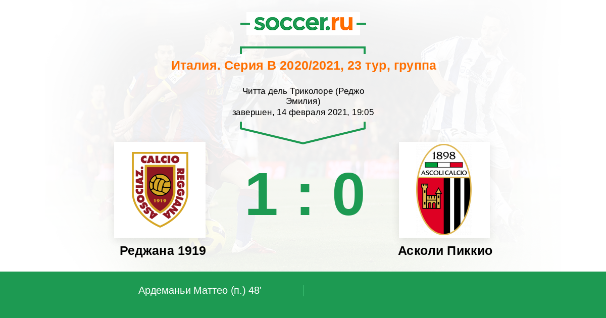 48' (1:0) Ардеманьи Маттео (99)
