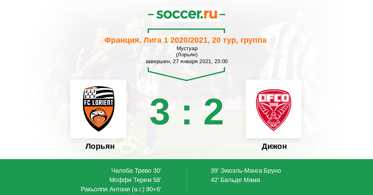 Протокол матча Лорьян против Дижон