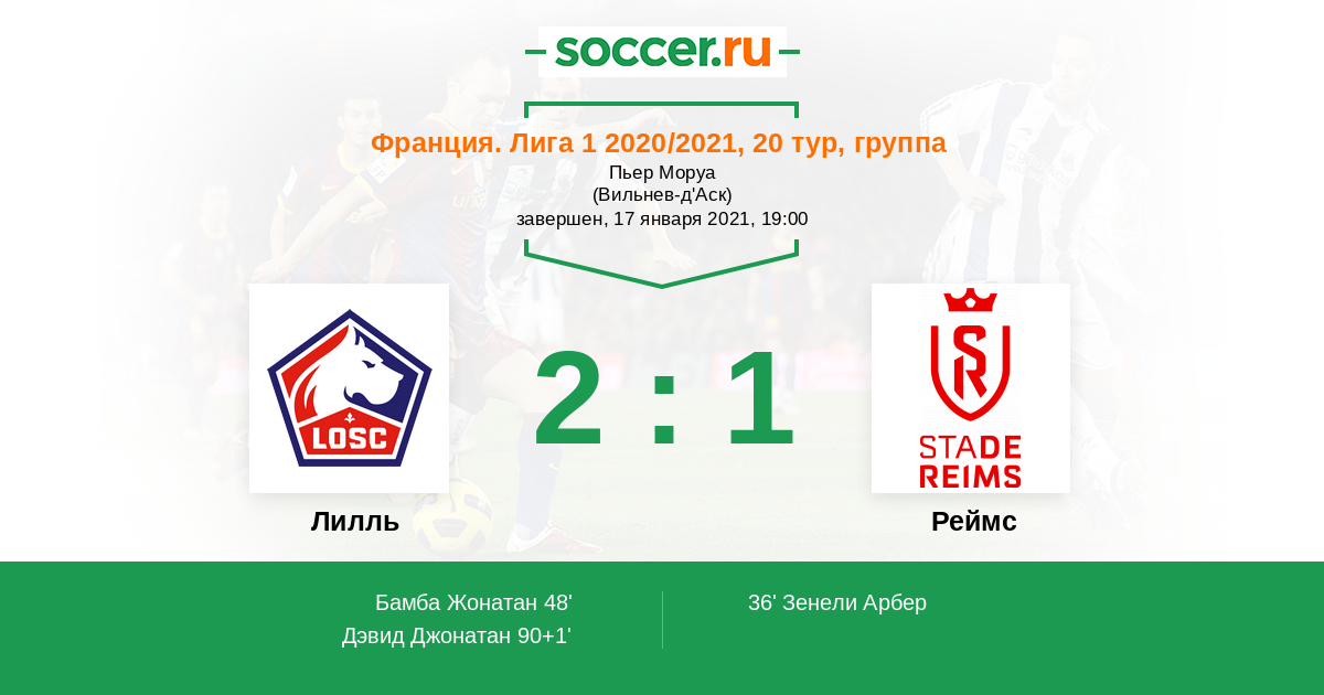 Протокол матча Лилль против Реймс