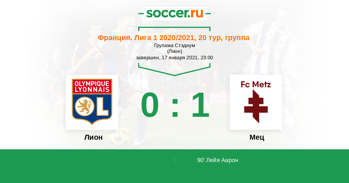 Протокол матча Лион против Мец