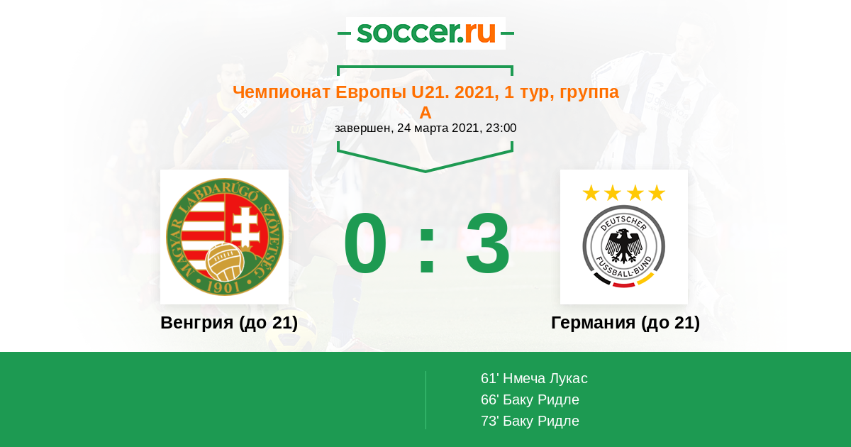 Протокол матча Венгрия (до 21) против Германия (до 21)