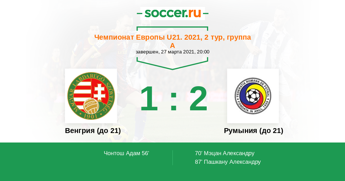 Протокол матча Венгрия (до 21) против Румыния (до 21)