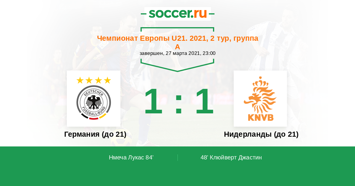 Протокол матча Германия (до 21) против Нидерланды (до 21)