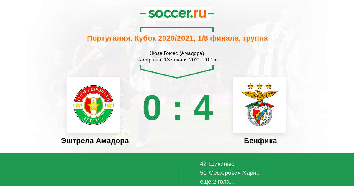 Протокол матча Эштрела Амадора против Бенфика