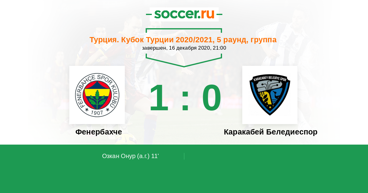 Протокол матча Фенербахче против Каракабей Беледиеспор