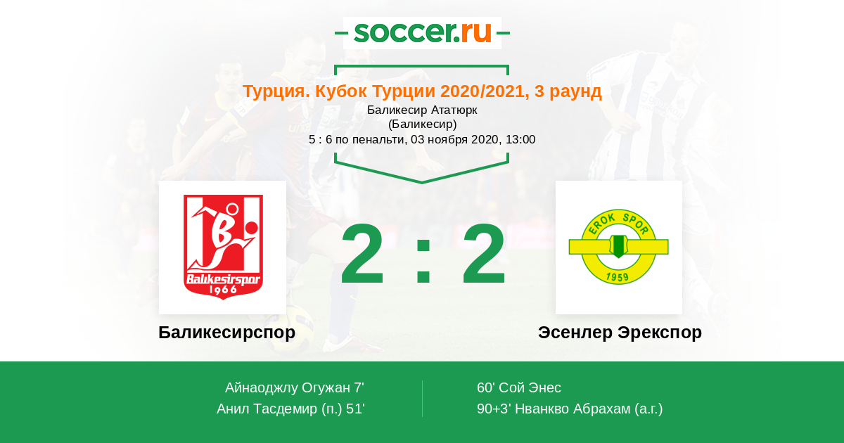 Протокол матча Баликесирспор против Эсенлер Эрекспор
