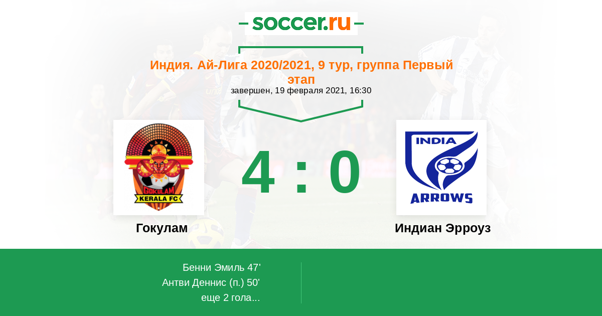 Протокол матча Гокулам против Индиан Эрроуз