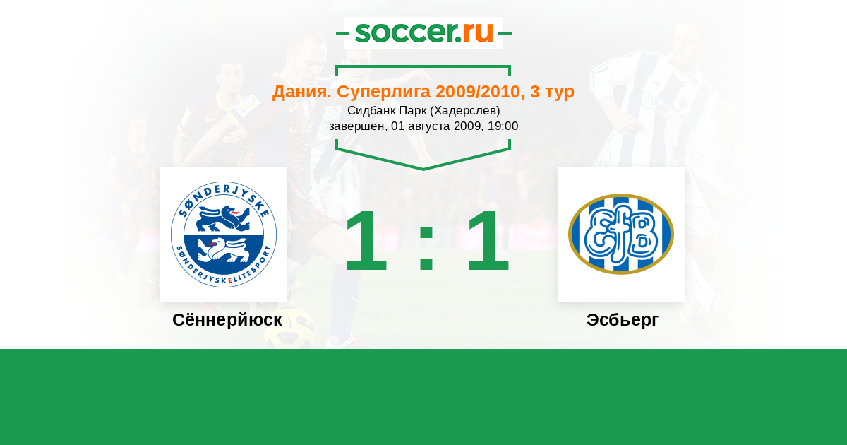 Дания. Суперлига 31.07.2010 Сённерйюск Логотип футбольный клуб Сённерйюск (Хадерслев) 3:0 Логотип футбольный клуб Эсбьерг Эсбьерг