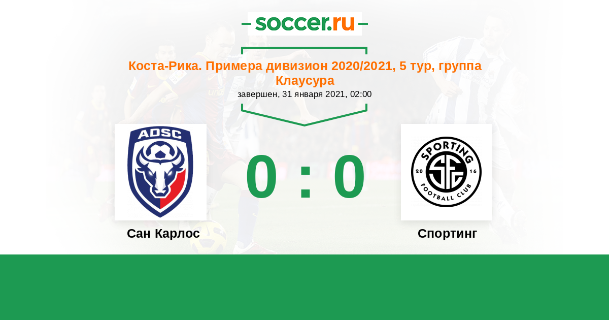 Протокол матча Сан Карлос против Спортинг Сан-Хосе