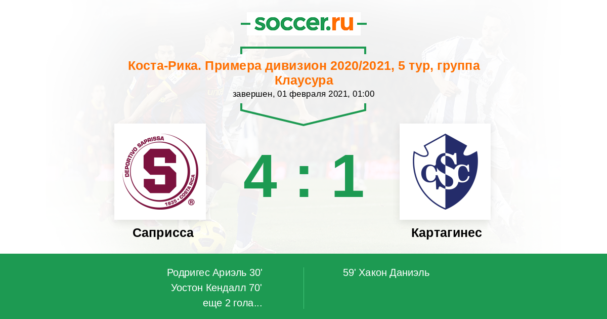 Протокол матча Саприсса против Картахинес