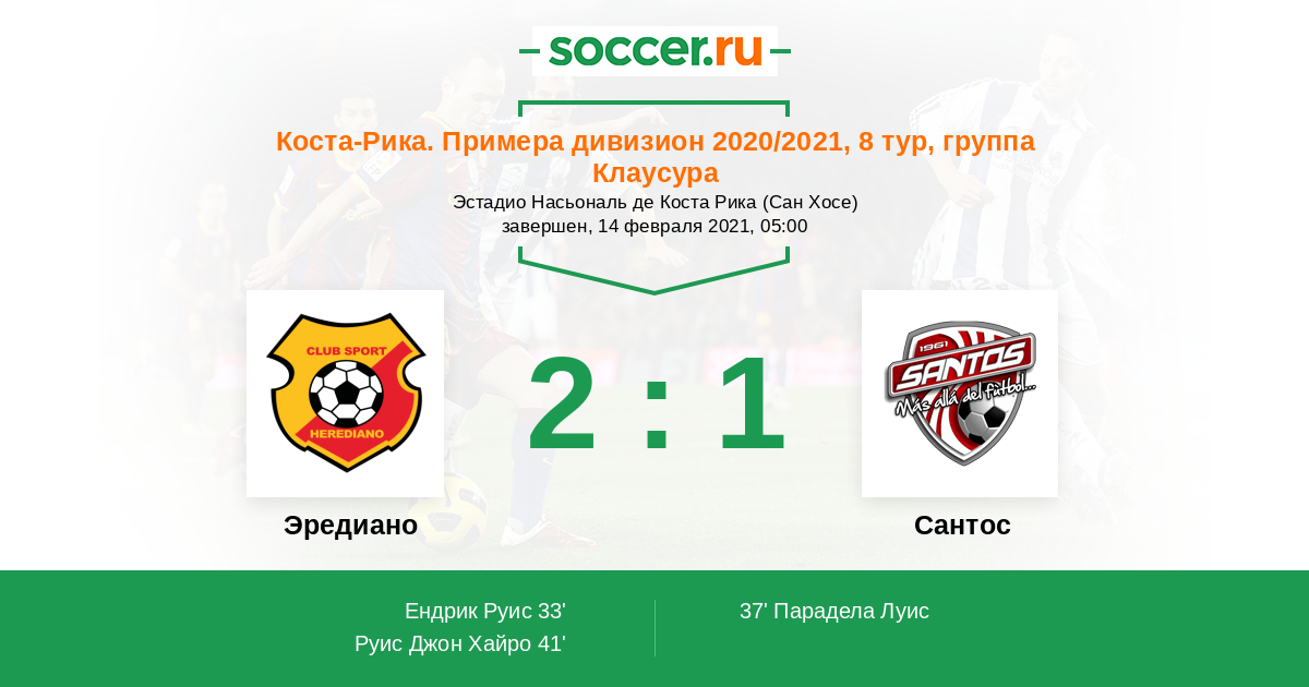 Протокол матча Эредиано против Сантос