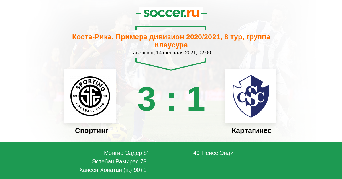 Протокол матча Спортинг Сан-Хосе против Картахинес