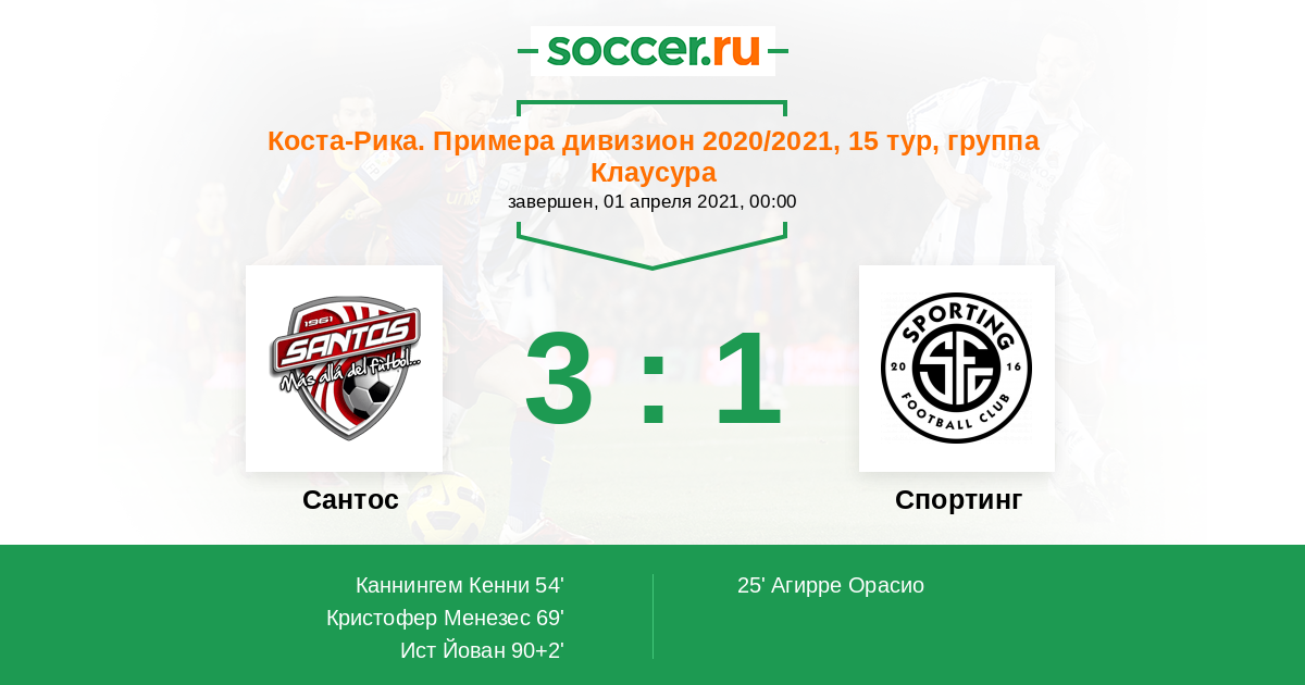 Протокол матча Сантос против Спортинг Сан-Хосе