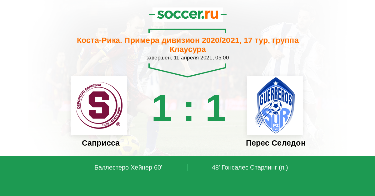 Протокол матча Саприсса против Зеледон