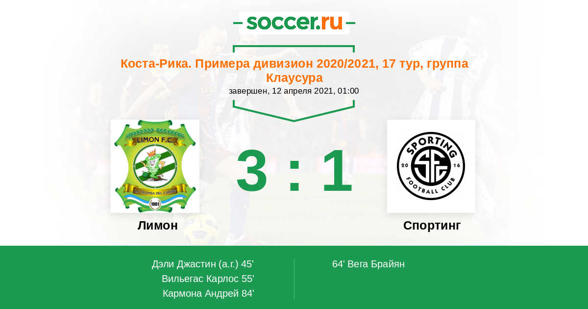 Протокол матча Лимон против Спортинг Сан-Хосе