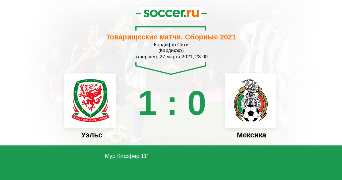 Протокол матча Уэльс против Мексика