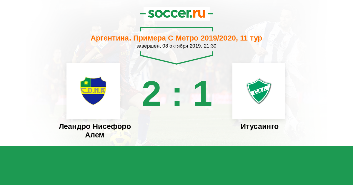 Аргентина. Примера С Метро 24.10.2021 Итусаинго Логотип футбольный клуб Итусаинго 1:0 Логотип футбольный клуб Леандро Нисефоро Алем (Буэнос-Айрес) Леандро Нисефоро Алем