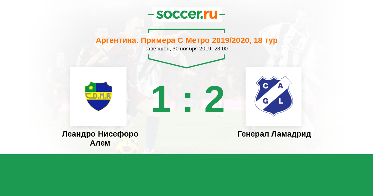 История матча Леандро Нисефоро Алем против Генерал Ламадрид