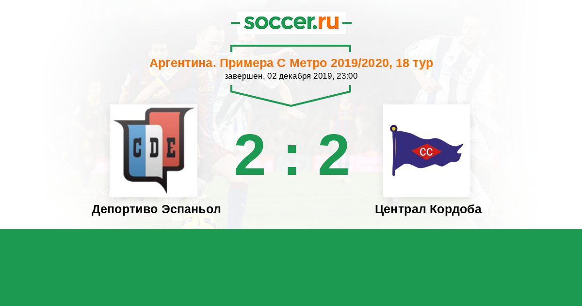Аргентина. Примера С Метро 03.04.2014 Централ Кордоба Логотип футбольный клуб Централ Кордоба 0:3 Логотип футбольный клуб Депортиво Эспаньол (Буэнос-Айрес) Депортиво Эспаньол