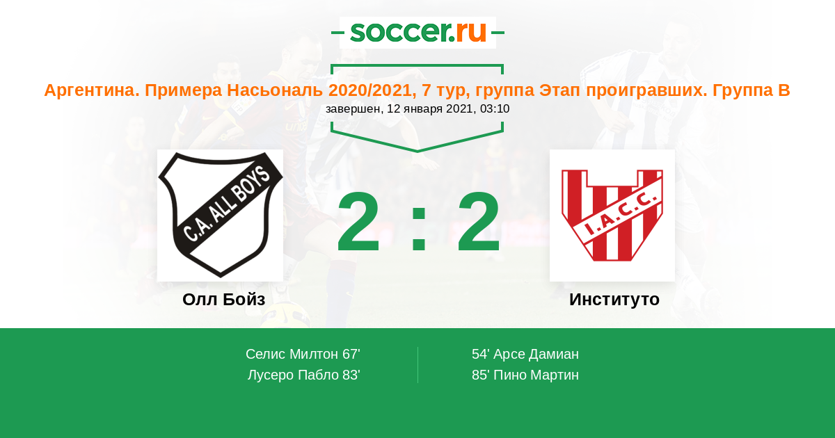 Протокол матча Олл Бойз против Институто