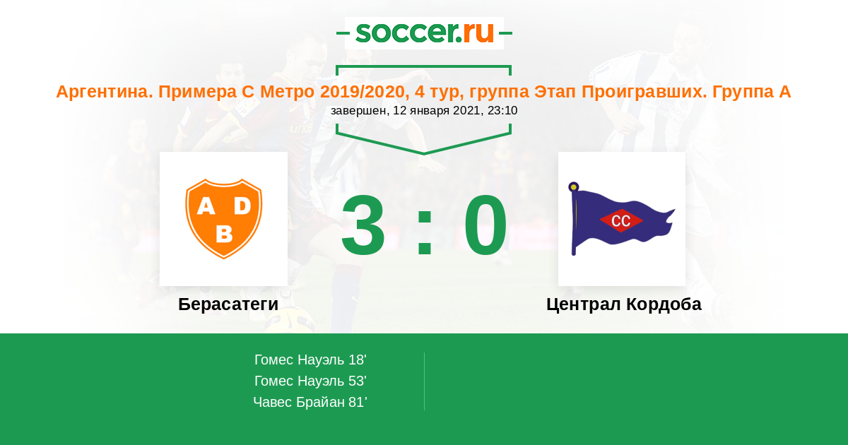 Протокол матча Берасатеги против Централ Кордоба