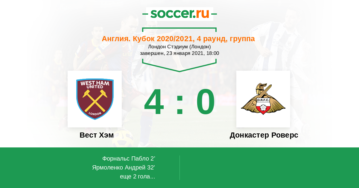 Протокол матча Вест Хэм против Донкастер Роверс