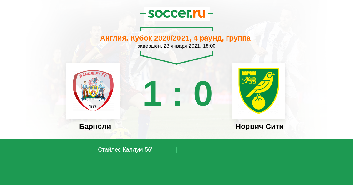 Протокол матча Барнсли против Норвич Сити