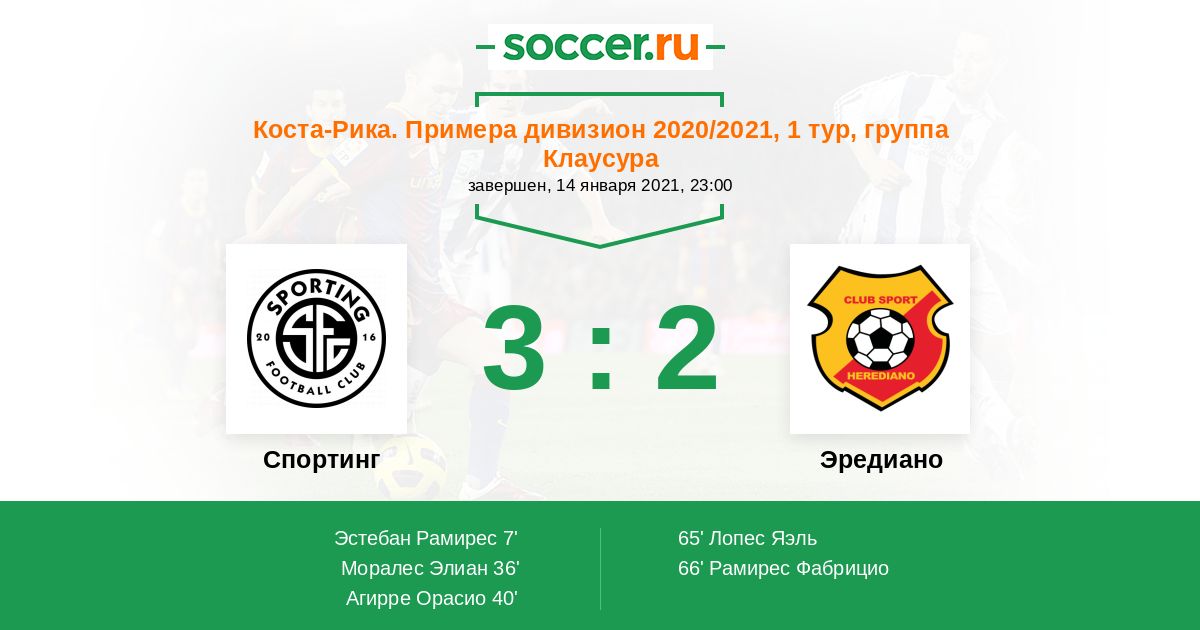 Протокол матча Спортинг Сан-Хосе против Эредиано